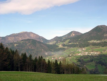 Ni dolgo, ko smo nad domačijo Zalubnikar, od koder se pred nami odpira rajski pogled na Vajnež, Stol, Begunjščico, Košuto, pa vse tja do Hudičevega Boršta.