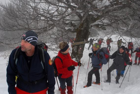 Pot smo začeli v Leskovici. Pri koči na Blegošu smo si po krajšem počitku in čaju nadeli dereze in se odpravili čez vrh Blegoša na Črni kal, v Četeno ravan in na Lubnik. Letos sta nas pri vzponu na Blegoš in pri spustu na Črni kal spremljala megla in mrzel veter, od Črnega kala do Podvrha pa nas je čakalo gaženje po celem srenastem snegu, ki se je prediral. Stane, Janez in Viktor so zato, da so nam utirali pot in skupini olajšali napredovanje, odšli naprej. Zato se jim lepo zahvaljujem.