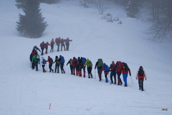 Tudi ta zimski pohod, kot večina do sedaj, je bil kar zahteven. Čeprav je svež sneg pokril dele poledenele in zdrsane poti, je že proti Jelencem pot opozarjala, da bo treba paziti, zato smo si po krajšem počitku in čaju pri Koči na Blegošu nadeli dereze in se odpravili čez vrh Blegoša na Črni Kal, na Četena Ravan in Lubnik. Tudi letos sta nas pri vzponu na Blegoš in pri spustu na Črni Kal spremljala megla in mrzel veter. Ta se je kasneje polegel in ni več oviral napredovanja k cilju.