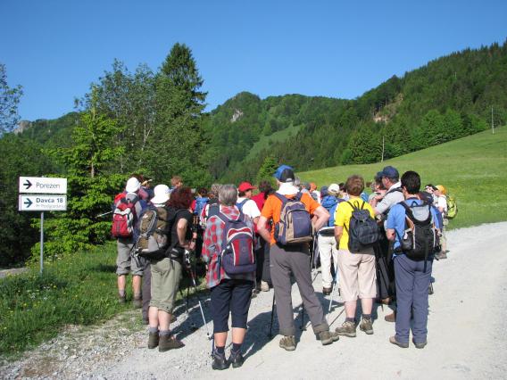 Kar šestdeset planincev "Nežkine" skupine se je 21. maja udeležilo izleta na najvišji vrh Cerkljanskega hribovja, 1622 metrov visoki Porezen.