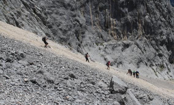Sestopali smo mimo bivaka 2, spotoma smo šli še na Šplevto, katera je bila od nas oddaljena le nekaj minut. Največji užitek pa nam je bil dan pri sestopu po dolgem melišču, spust cca 500m nadmorske višine.