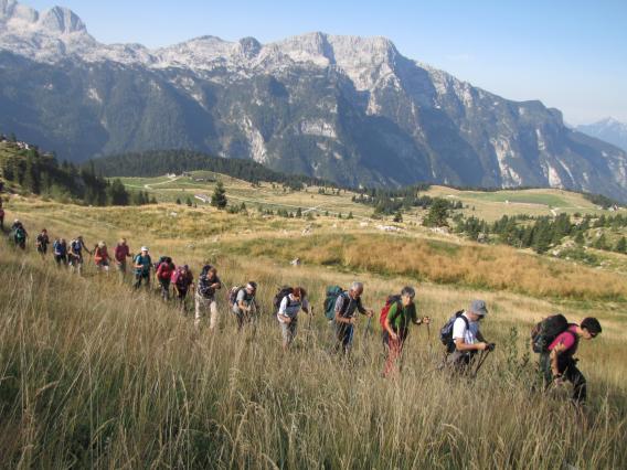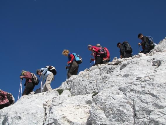 Z avtobusom smo se zapeljali na planino Pecol, s katere je bil čudovit pogled proti Kaninskemu pogorju in Montaževi skupini. Sledili smo markacijam, ki so nas pripeljale do koče Brazza. Prvi del vzpona je potekal po travnatem pobočju, drugi del poti pa je bil bolj strm, na stezi je bilo precej grušča. Stopali smo previdno, v enakomernem tempu. Večkrat smo se ustavili, da smo fotografirali gamse, ki so se mirno sprehajali nad nami. V treh urah smo prispeli na vrh. Odprl se nam je čudovit pogled na Zahodne Julijce. Jasno vreme je bilo naklonjeno fotografom. Greli smo se na soncu in uživali v objemu gora.