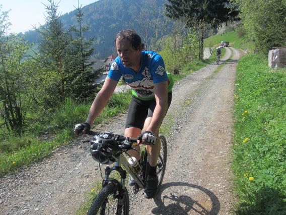 Po 30 kilometrih večinoma makadamskih poti nas je pričakala prijetna koča z odlično pijačo in jedačo. Vrnili smo se nazaj po vojaški cesti in se prek Golice po izredno lepih, starih gozdarskih poteh spustili v Dolenjo vas, od koder smo se po glavni cesti vrnili v Škofjo Loko.
