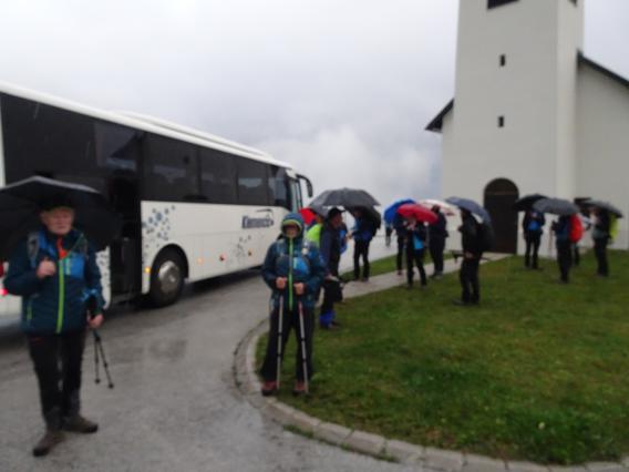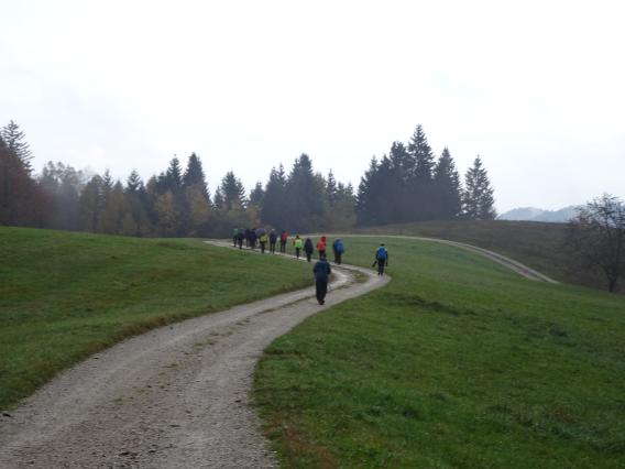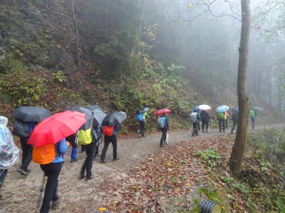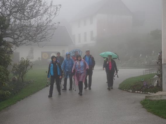 Zjutraj smo se odpeljali na izhodišče. Že med vožnjo je pričelo deževati in nato nas je celo pot spremljalo podobno vreme, občasni dež ter nadležna megla z rosenjem. A kljub temu je bilo v skupini prijetno razpoloženje.